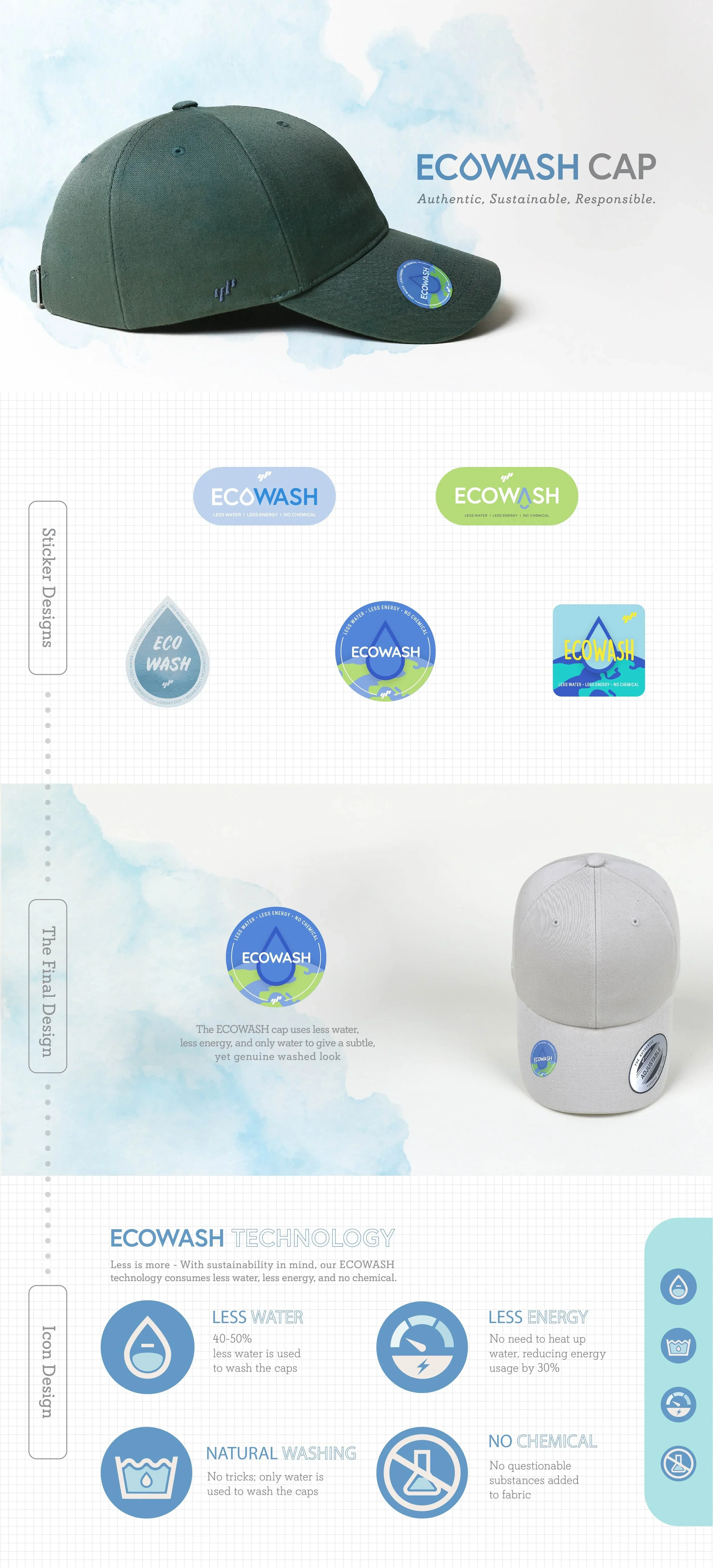 Flexfit® is steering the fashion industry toward a greener future with its new line of sustainably manufactured hats. To visually represent this innovation, I crafted a dedicated logo for the product's branding sticker, complemented by a system of icons that communicate its environmental commitment.