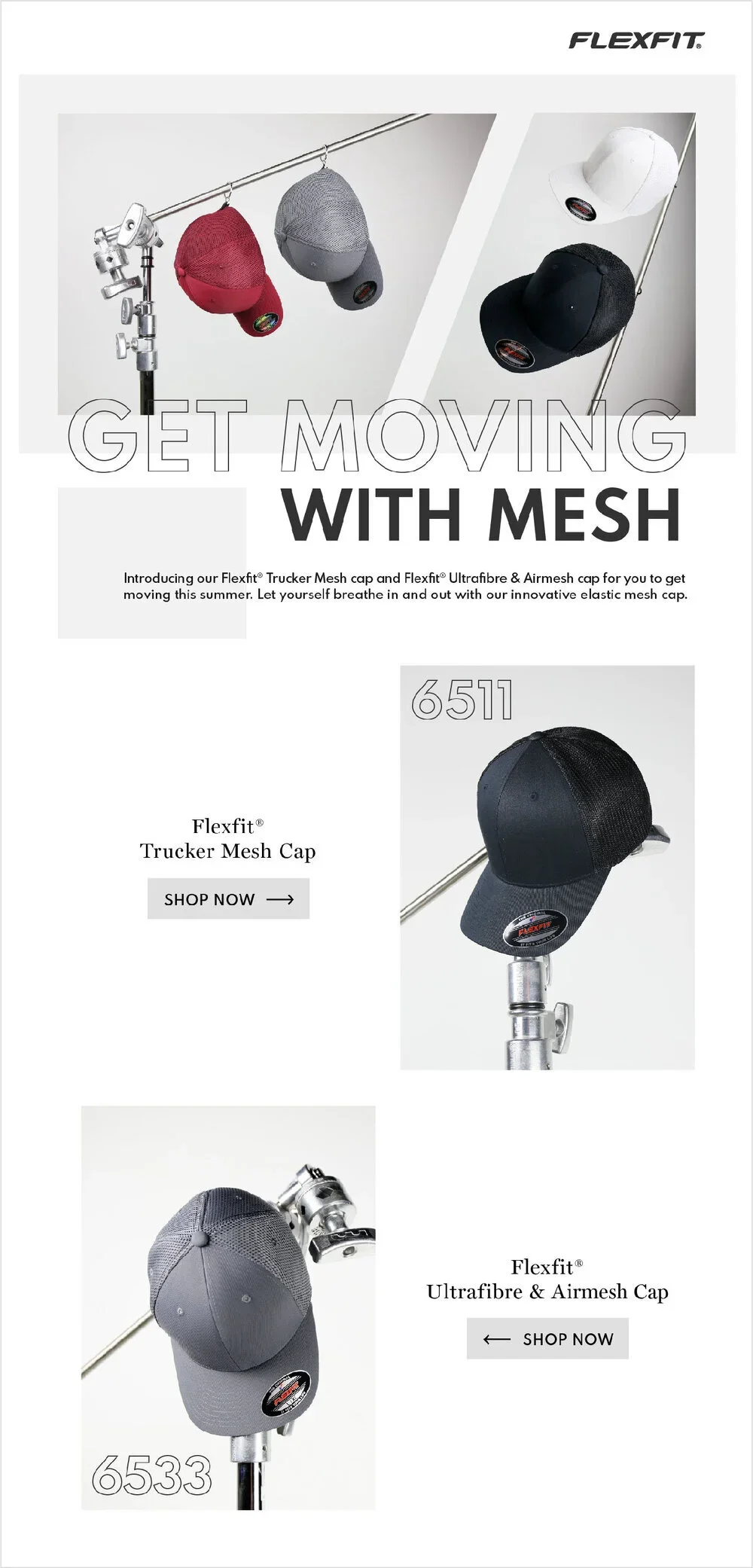 Flexfit frequently used email marketing to highlight the different hat styles it offers to customers.